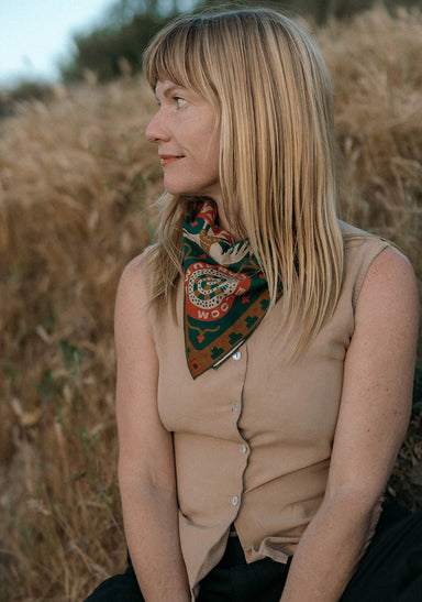 Standard 21 x 21 inch bandana. Machine wash cold with like colors, line or tumble dry, warm iron, do not bleach