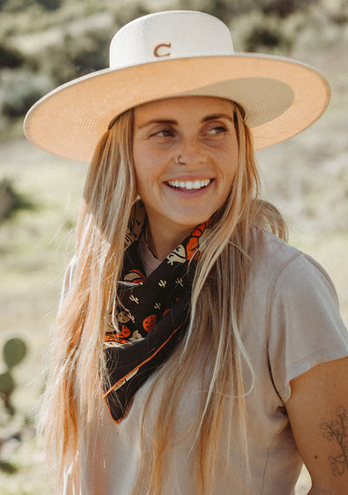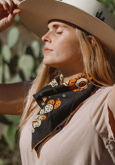 Standard 21 x 21 inch bandana. Machine wash cold with like colors, line or tumble dry, warm iron, do not bleach