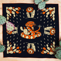 Further enforcing the dream motif, the design's kaleidoscoping patterns provide a sense of disorientation and spiraling movement. You're not sure which direction to look, through you can't help but come back to the imposing rattlesnake right before your eyes. The cacti provide a symbol of strength and resilience in the face of dangerous obstacles or harsh environments. It's a design that'll remind you to face your fears, to rely on your strength, and of course - to enjoy psychedelics responsibly.