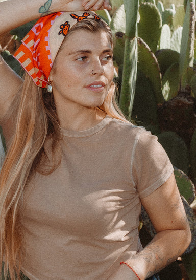 www.palomanicole.comPaloma Nicole Diaz is a graphic artist and illustrator based in Dallas, TX. She attended California College of the Arts in San Francisco, where she earned a BFA in illustration as well as a minor in the history of art and visual culture. As a first generation child of Mexican immigrants raised in the U.S., her work often explores and focuses on representations of her Mexican heritage. There is a readily-evident intentionality in Paloma's work, that belies the deep personal connections she feels to her subject matter. Each color, line, and piece of text feel considered, creating a sense of timelessness and dialogue with the past. Paloma self-describes her work as a unique blend of Mexican folk art and traditional wood engraving, centered around neutral, Earthy colors with pops of neon. Her pieces (including now 2 bandana designs for BANDITS!) nod to spirituality, femininity, and the Latinx experience. In addition to her own work, Paloma is also passionate about helping other Latinx artists and business owners to authentically elevate their brands. Through this work, She hopes to help the Latinx community feel seen and represented. Much like her own experience, she hopes to help others to embrace their cultural identities and discover pride in their own heritage. When she's not creating beautiful pieces or helping others, you can find Paloma traveling the world in search of new inspiration, new experiences, and new places to enjoy a great cup of coffee.