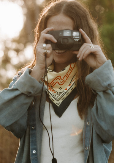 Is This Real Life? is the moniker and brand of Manchester, UK designer and illustrator Holly Tudor. Naturally, Holly's cheeky bandana designs for her brand caught our eye, and we instantly knew we wanted to work with her. Though her funky doodles tend not to take themselves too seriously, they're also clearly rooted in deeper themes and inspiration. Holly told us that "So much of my style has developed through looking at ancient and historical art through travel and blending it with modern day themes." Citing influences from world travel, ancient drawings, painting, and sculptures, her work is able to adeptly explore existential questions through a light-hearted lens. Holly continues the theme of making high-level concepts more approachable with her Is This Real Life? brand. Through accessible pieces like t-shirts, bandanas, posters, and blankets adorned with her incredible designs, she creates wearable art for those who want to wear their passions on their sleeve. As a brand with a similar goal, we feel like kindred spirits with Holly, and we're honored to finally work together with her on this great bandana design.