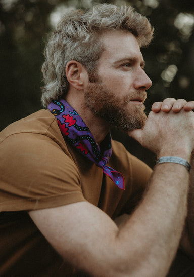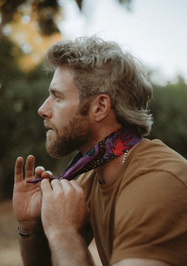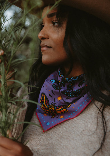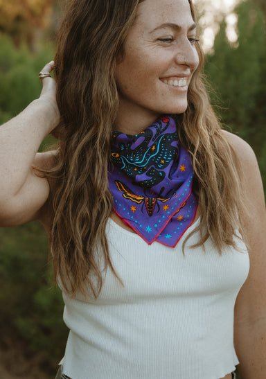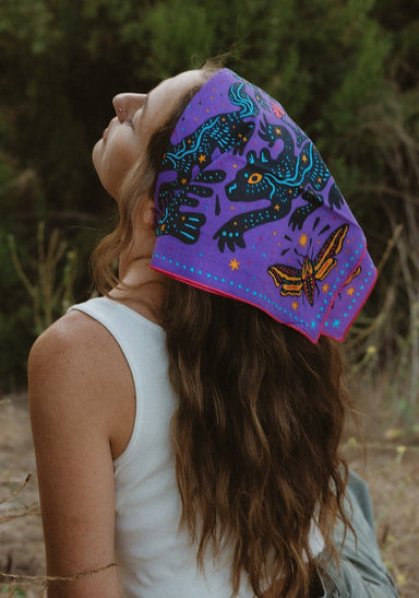Standard 21 x 21 inch bandana. Machine wash cold with like colors, line or tumble dry, warm iron, do not bleach