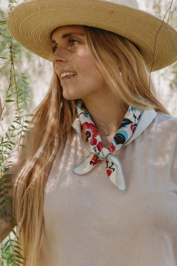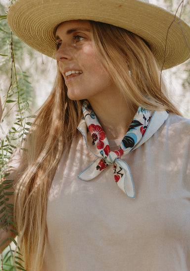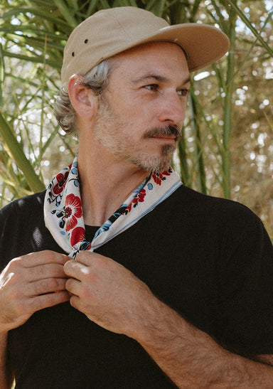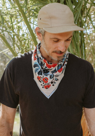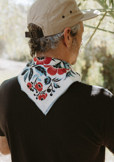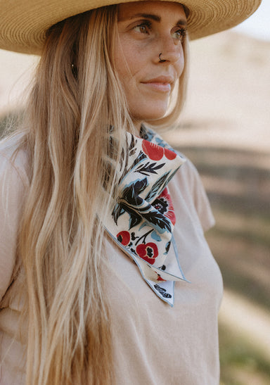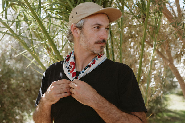 The design itself part of an emerging new aesthetic for artist Real Fun, Wow! It is a testament to his ever-evolving style that remains instantly recognizable as his own. We at BANDITS are awed at Daren's "spring forward" into this new design space, and can't wait to see the incredible direction it will take him in. Whether you're frolicking in flowers, dancing in the desert, or just siting under the stars, this bandana is perfect for getting out there and trying something new!