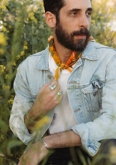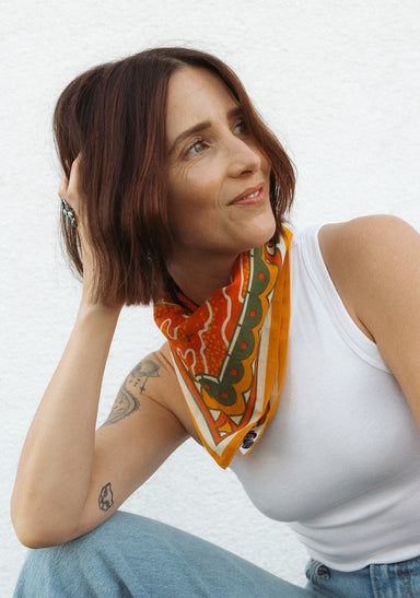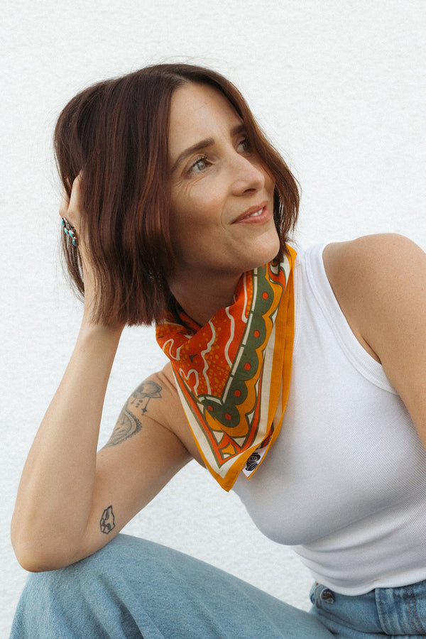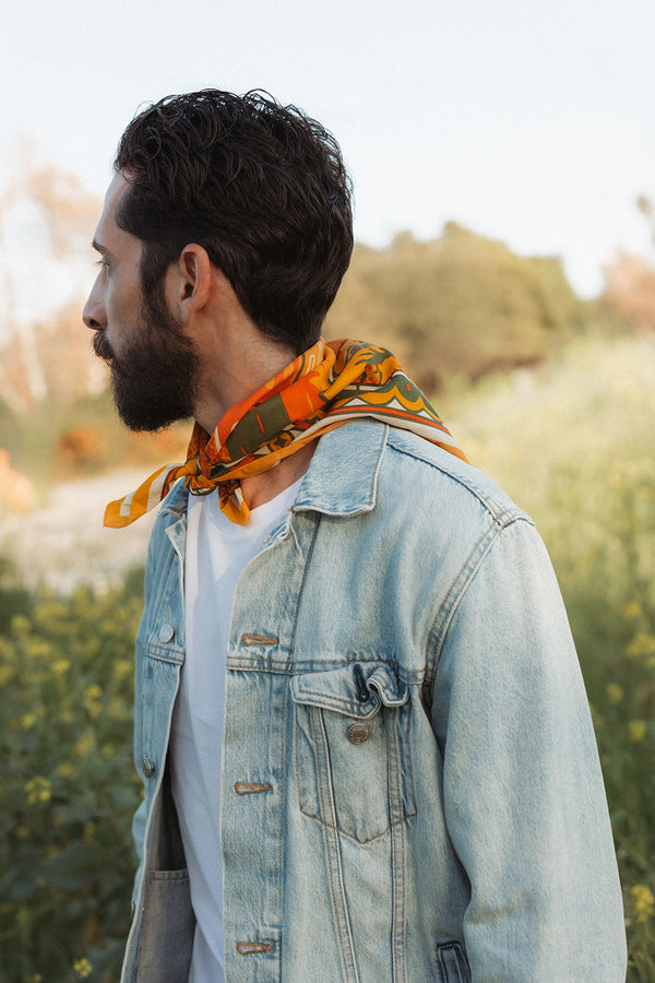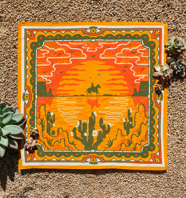Standard 21 x 21 inch bandana. Machine wash cold with like colors, line or tumble dry, warm iron, do not bleach