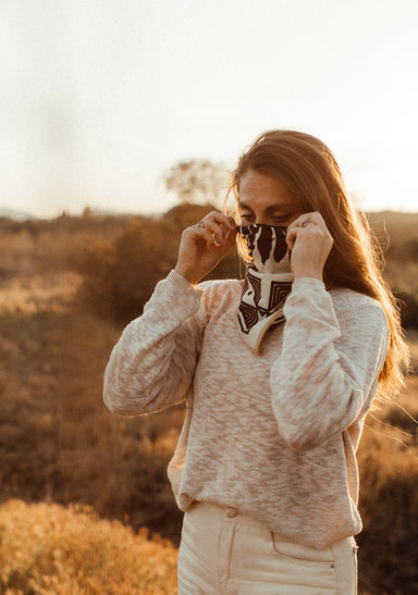 Together with the beautiful border design, the neutral, sun-bleached palette channels the rocky, chaparral-covered hills that roll through the region. It's a bandana that'll feel right at home on any Southwest adventure! This bandana is our fifth collaboration with our friend and Ojai neighbor Real Fun, Wow! and we're honored to bring this unique piece to life.